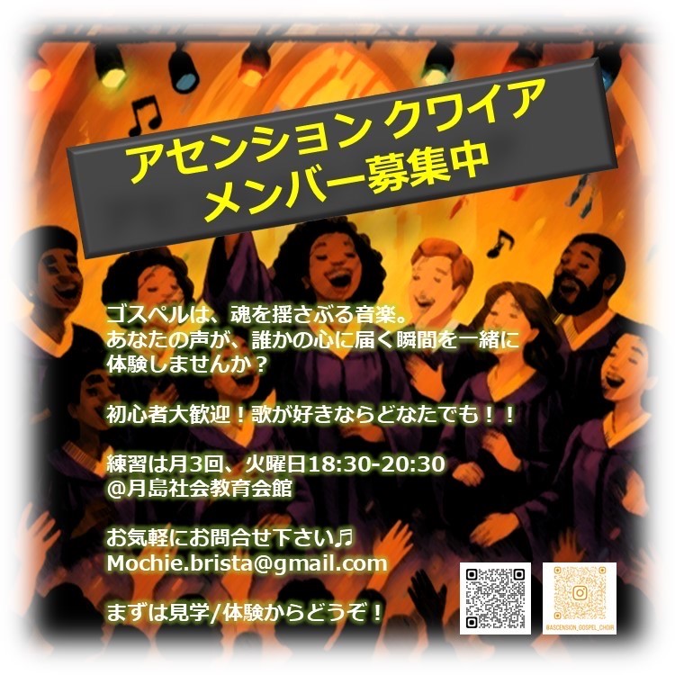 中央区月島で活動している、「アセンションクワイア」です。