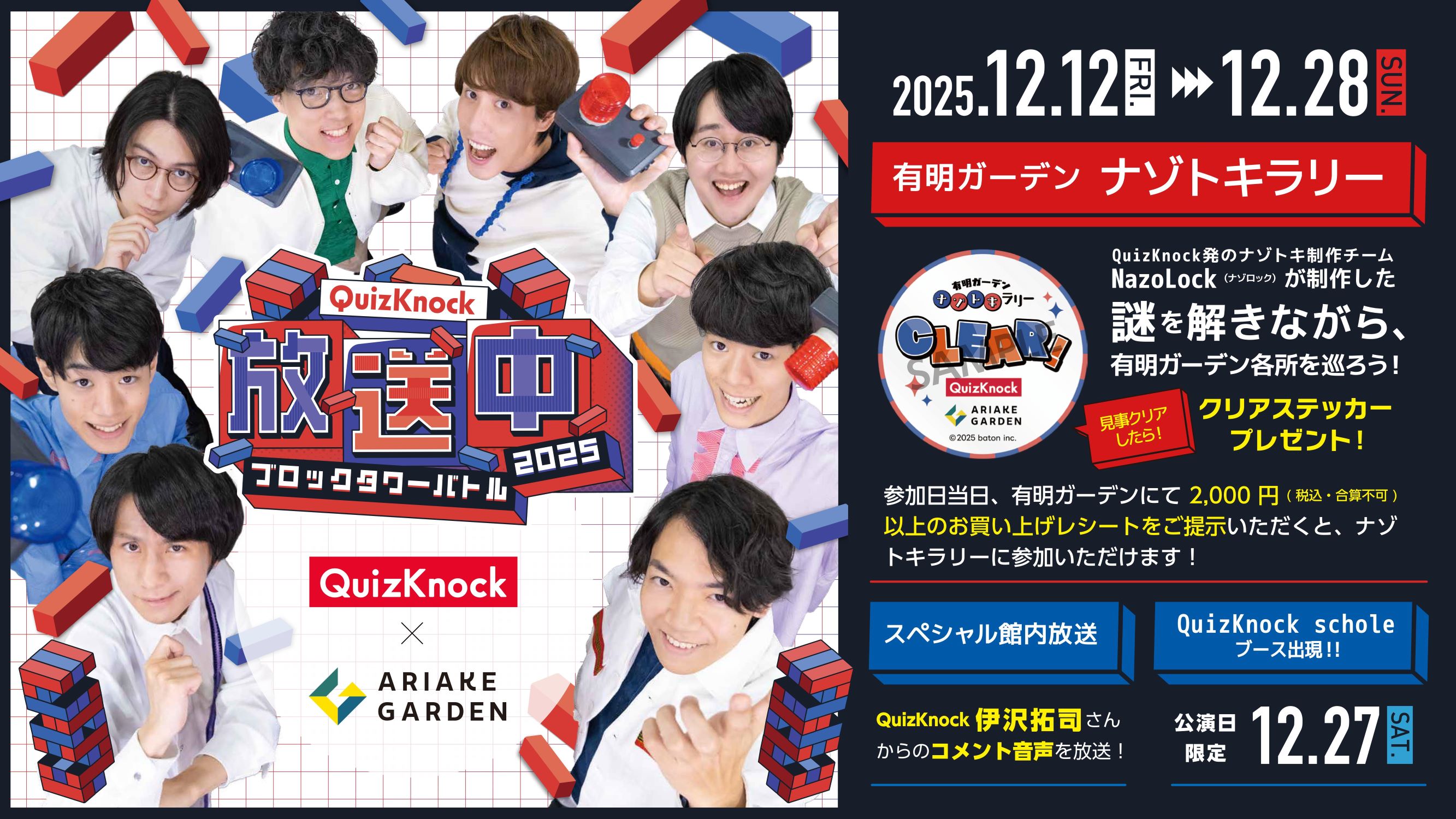 「QuizKnock放送中 2025 ブロックタワーバトル!」の公演を記念し、