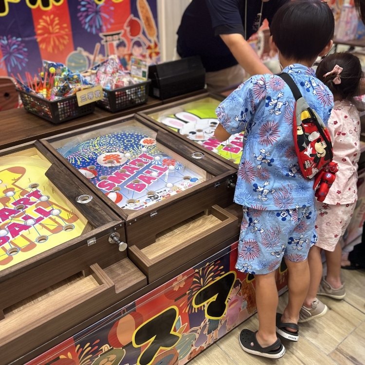 射的・わなげ・釣りゲーム・スーパーボールすくい・チャレンジダイス・こどもおみくじなど、さまざまなコンテンツで縁日コーナーを再現。