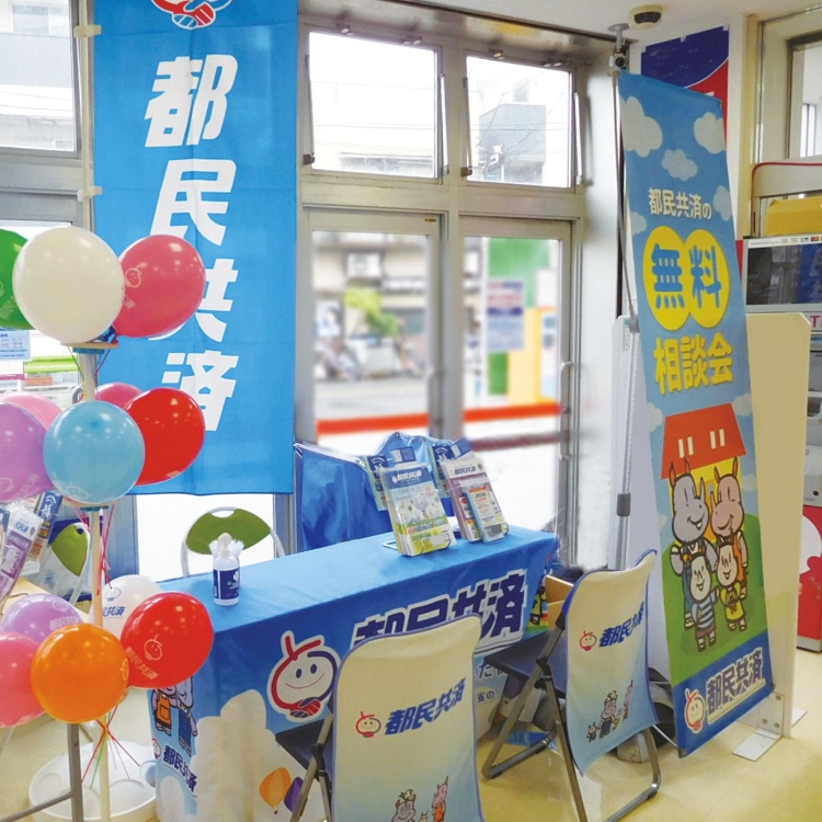 無料の縁日でお子様に楽しんでいただき、都民共済の保障内容等についてご相談がある場合は、その場でお答えします。