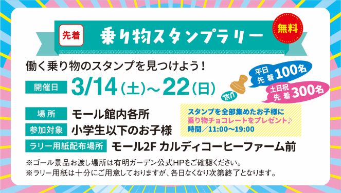 スタンプを全部集めると「乗り物チョコレート」がもらえるよ♪