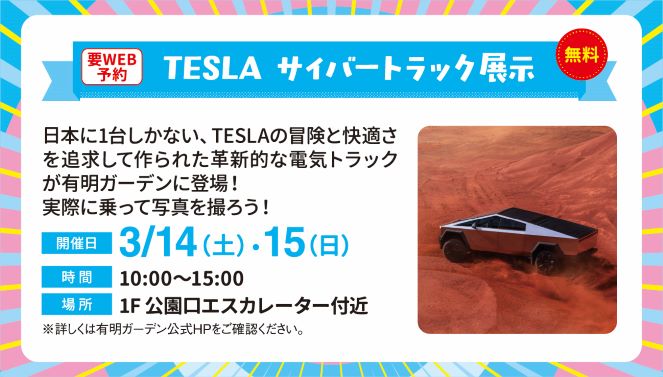 日本に1台しかない、TESLAの冒険と快適さを追求して作られた革新的な電気トラックが有明ガーデンに登場!