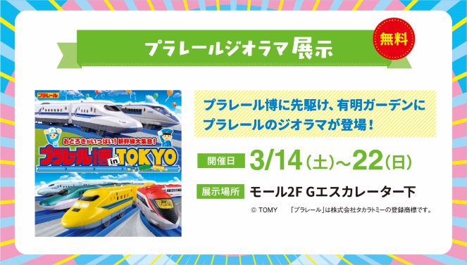 5月に有明GYM-EXで開催されるプラレール博に先駆け、有明ガーデンにプラレールのジオラマが登場!