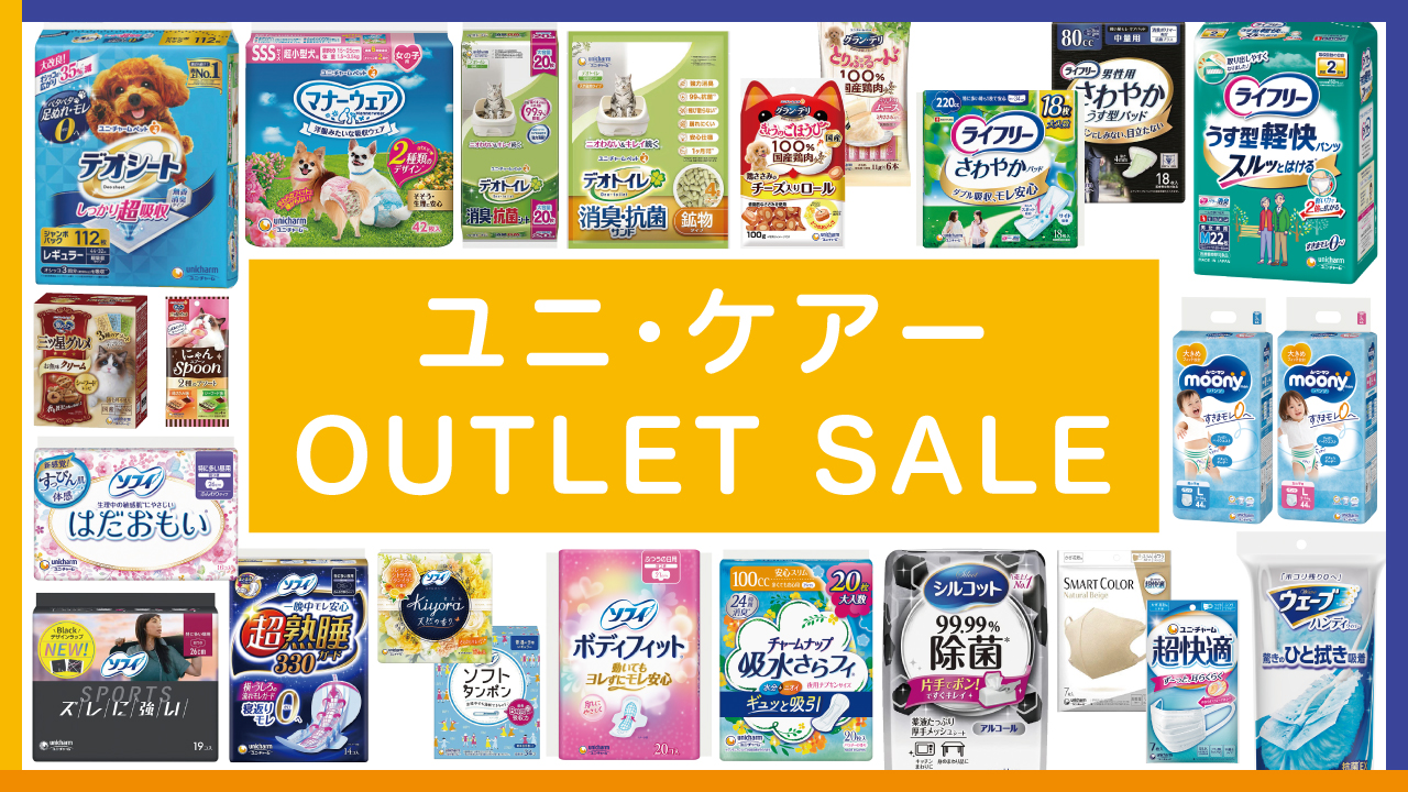 ユニ・チャーム製商品を中心に、生活用品・日用雑貨・化粧品などをアウトレット会員価格にてお求め頂けます。