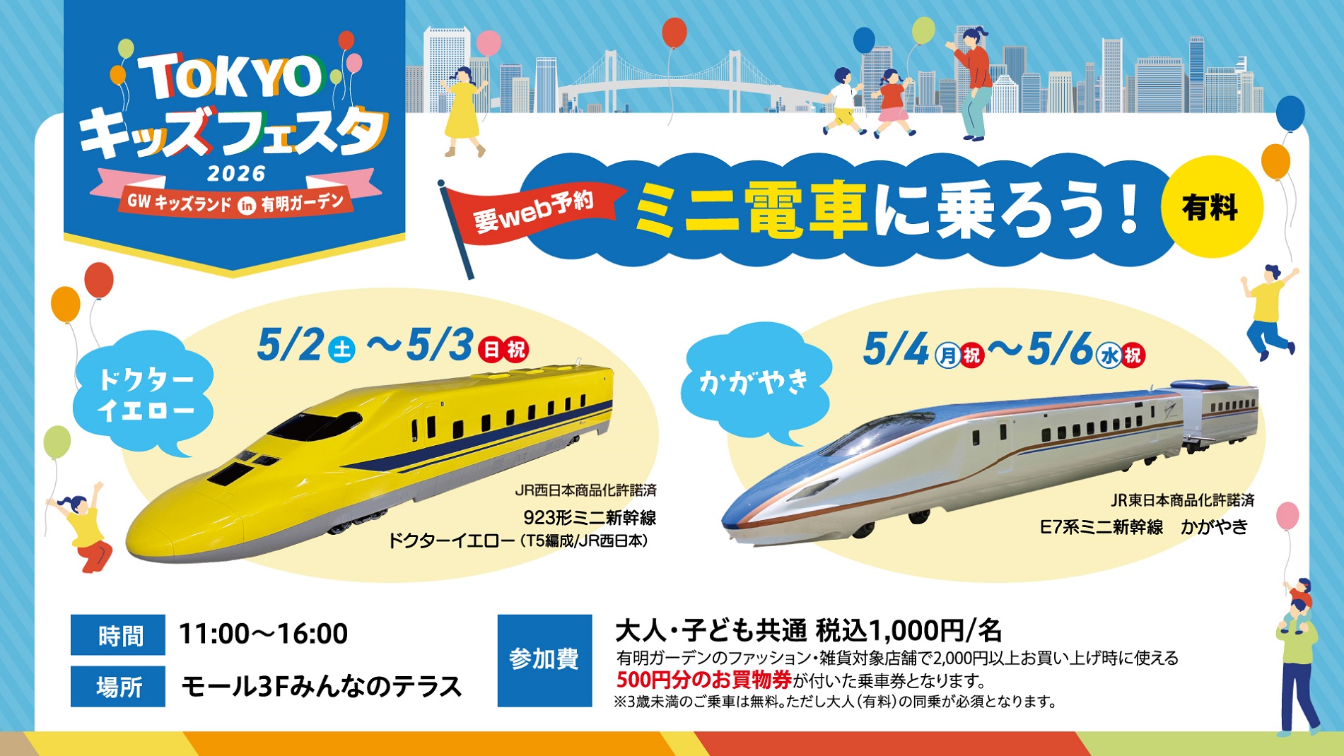 乗車料 :大人・子ども共通 税込1,000円/名(有明ガーデン ファッション・雑貨お買物券500円分が付いた乗車券となります。)