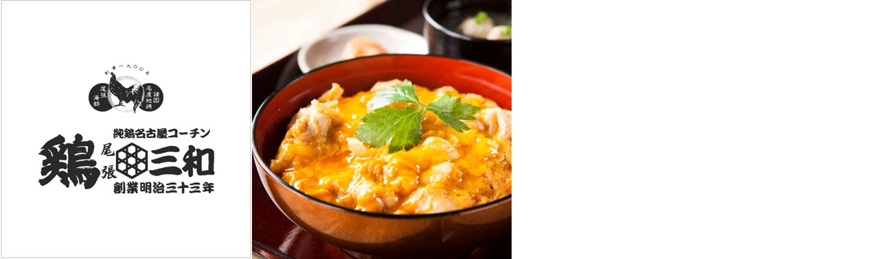 1900年(明治33年)創業の老舗鶏専門店として、名古屋コーチンを中心とした鶏料理のおいしさを125年以上にわたり追求してきたブランドです。ふわふわトロトロの卵に特製のだしが絡んだ「三和の純鶏名古屋コーチン親子丼」をはじめとし、鶏かつ丼・唐揚など、素材の旨みを活かした料理を幅広く展開しております。農場から加工・販売まで一貫して自社で行うことで、安全・安心で高品質な鶏料理をお客様へお届けしています。