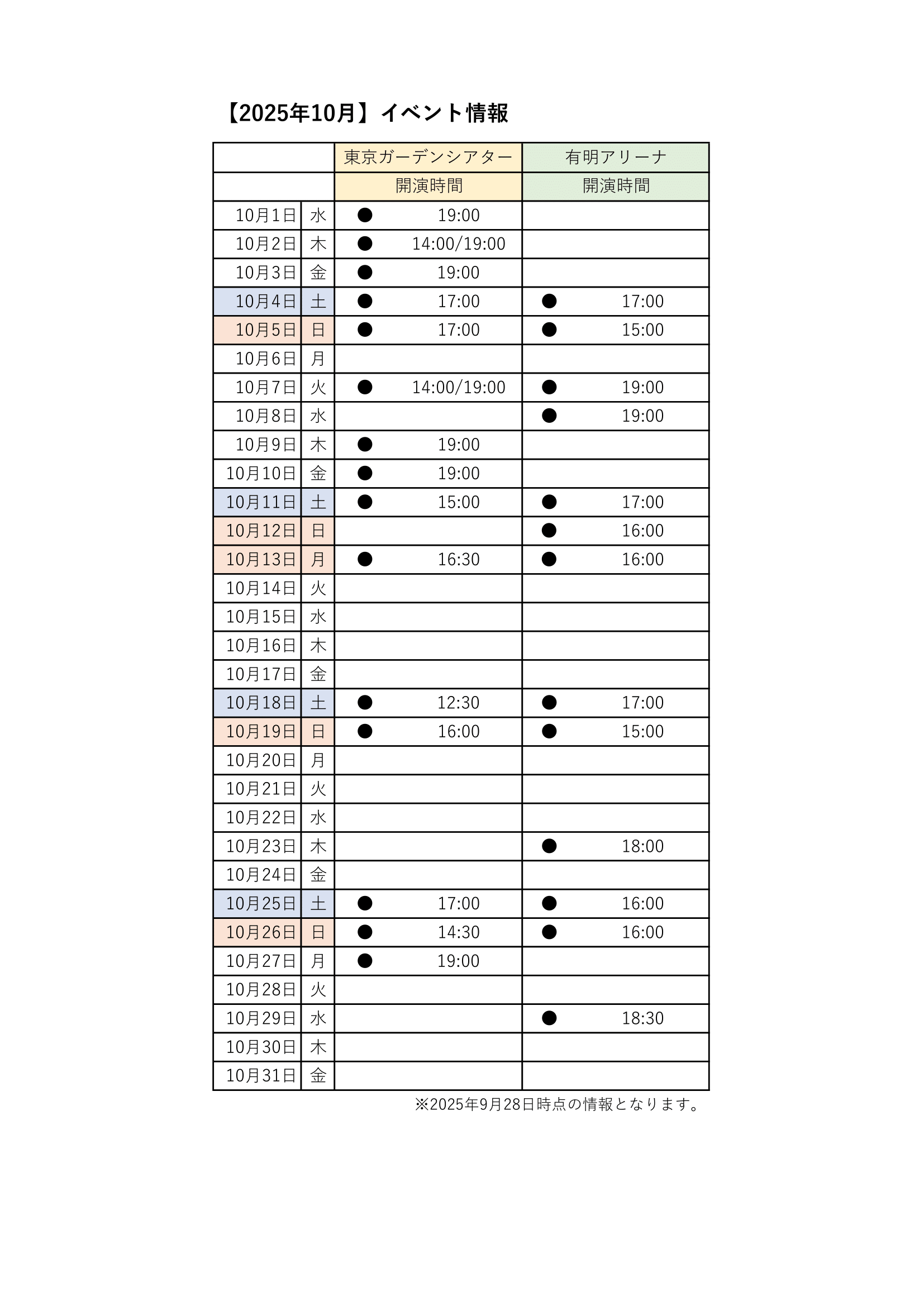 <9/28更新>有明ガーデン周辺イベント情報のお知らせ【2025年9月・10月】 2025年09月28日