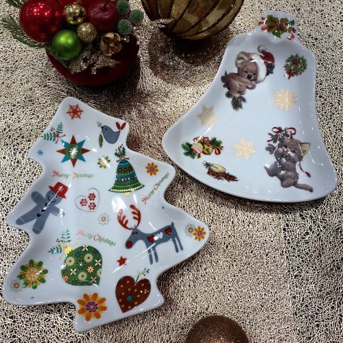 ツリーやベルの形をしたお皿にお好きな柄をデコラージュするだけなのでとっても簡単!!