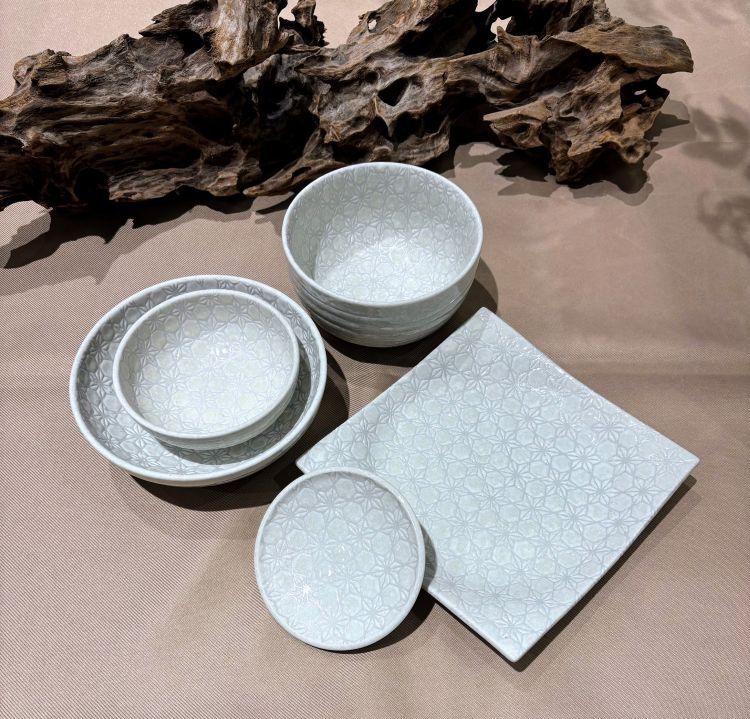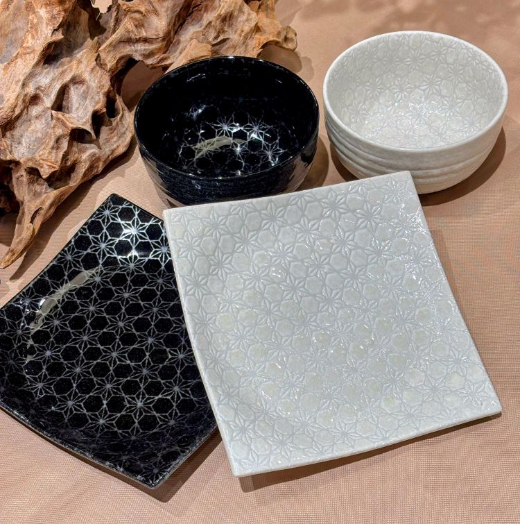お料理のじゃまをしない控えめな和柄を白と黒で。