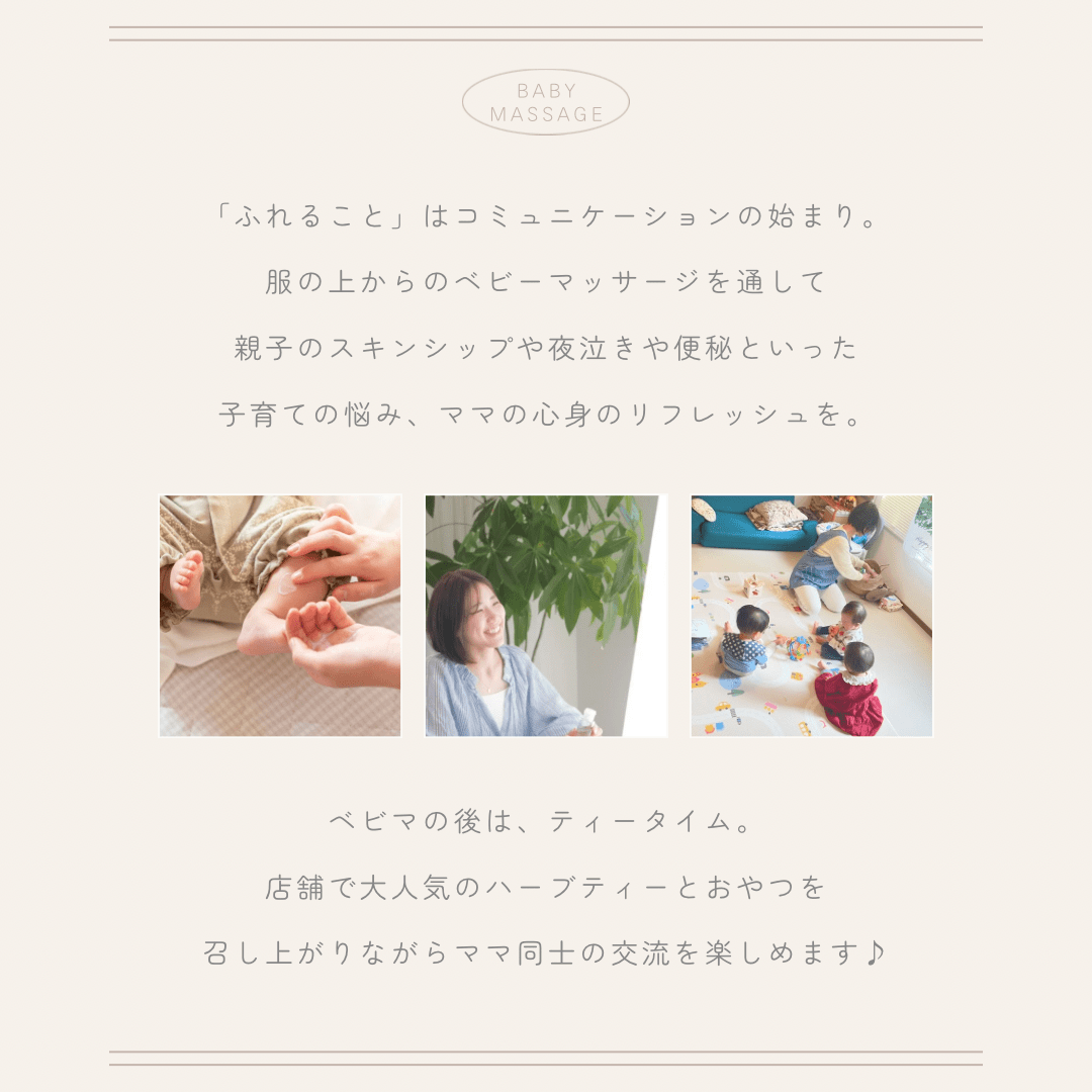 親子の触れ合いを通して夜泣きや便などお子様のお悩み解消やママのリフレッシュ時間を!