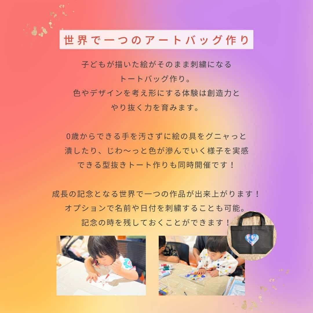 お子さまの描いた絵が、そのままトートバッグに刺しゅうorプリントされる特別な体験