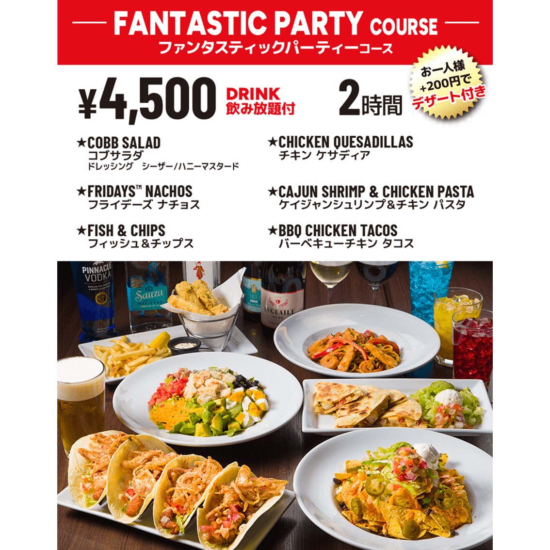 【2時間制】ファンタスティックパーティーコース(全6品) 4,500円(税込)
