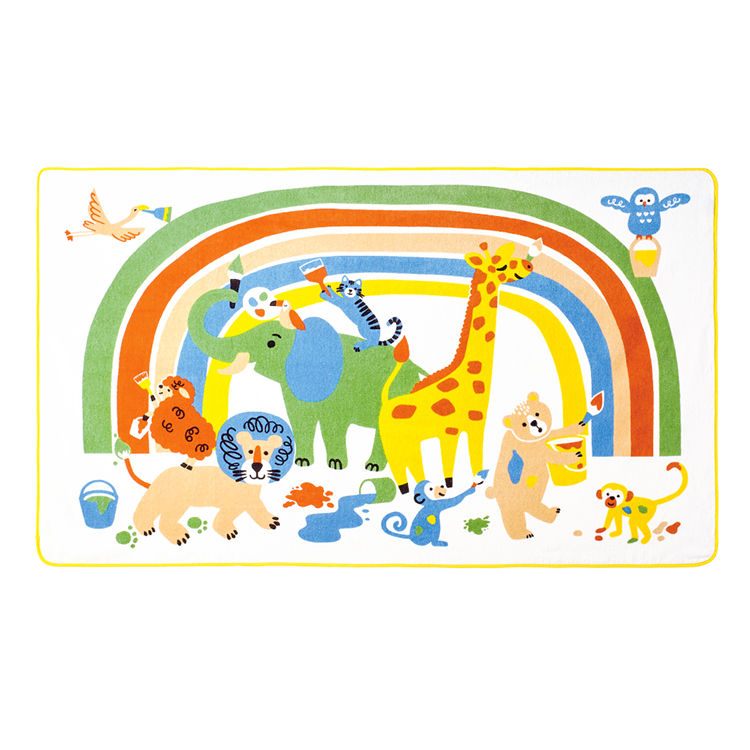 さまざまな動物たちがカラフルな絵の具で絵を描く様子をモチーフにした、にぎやかで楽しい雰囲気の入園・通園シリーズです。