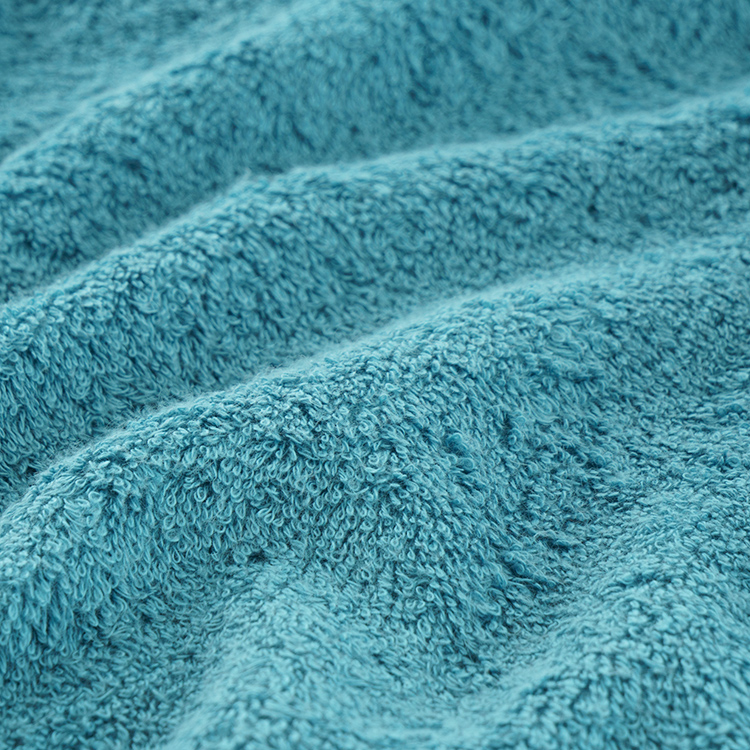 太めの糸を使用した厚めのパイル地とヘム部分は凹凸の織りが特徴です。