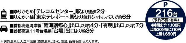- ※天然温泉は有明泉天空温泉(自家源泉、加温、循環ろ過)となります。