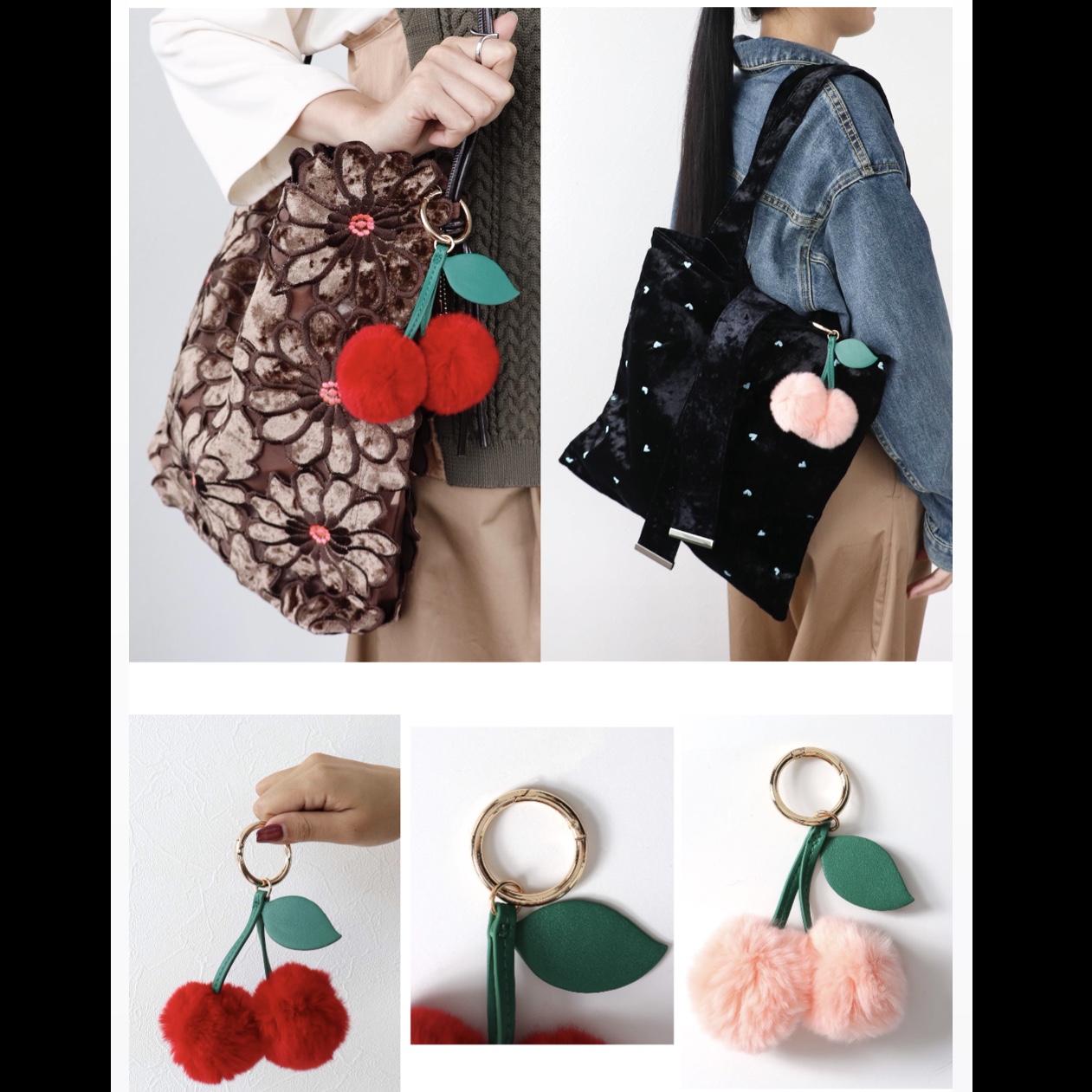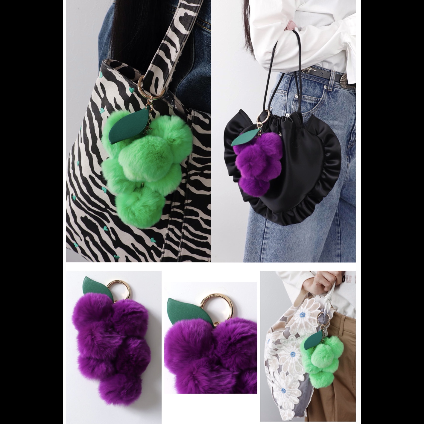 ファーだけでなくどちらのフルーツもなんと葉っぱがリアルレザーという本格仕様◎