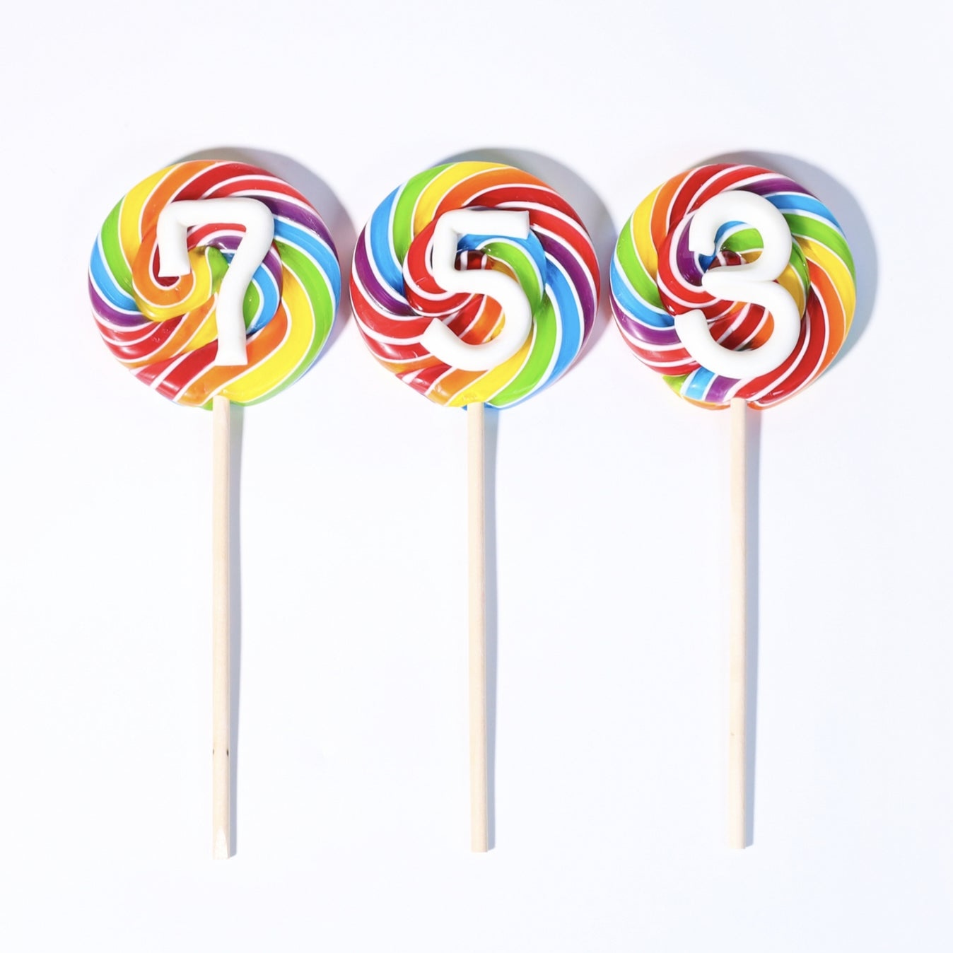 お祝いのシーンにぴったりな「7」「5」「3」の数字をデザインしたロリポップが登場です。鮮