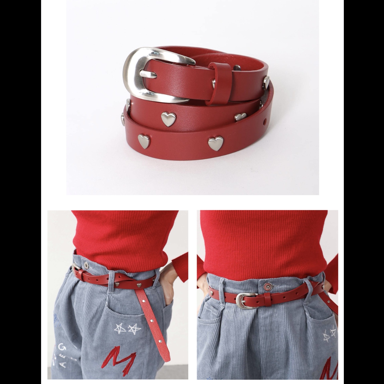 ぷっくりした立体的なハート型のシルバースタッズがポイントのレザーベルトです♡