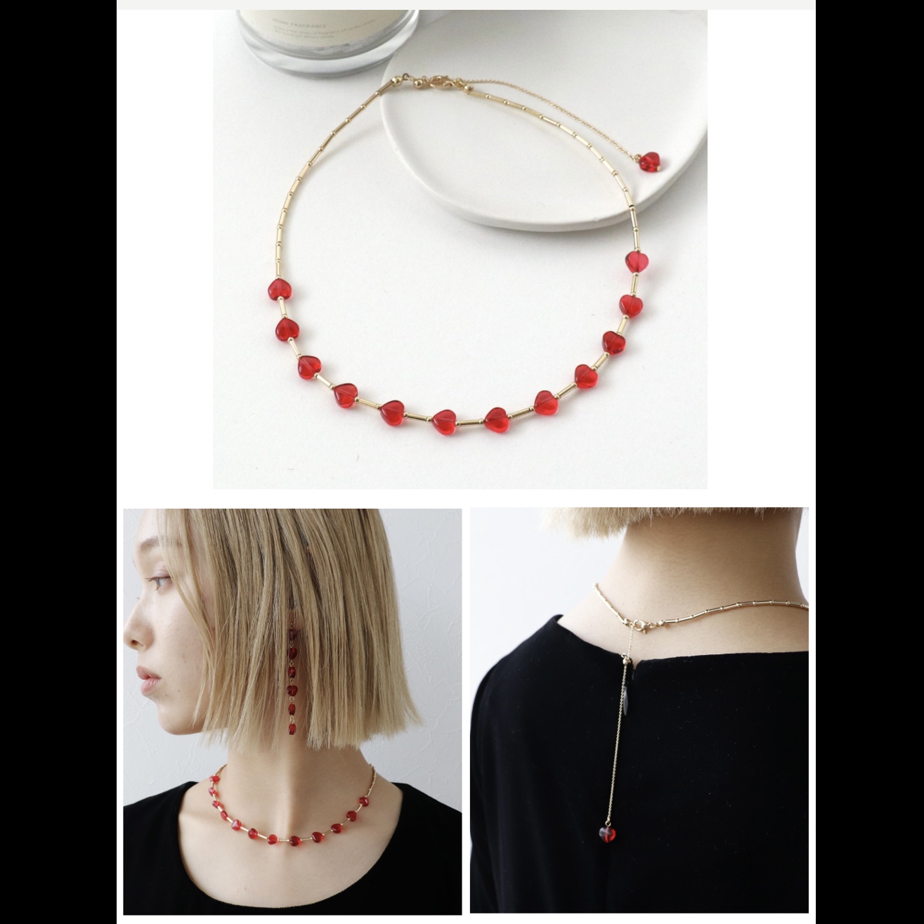 ハート型のクリアアクリルビーズが連なるネックレスです!