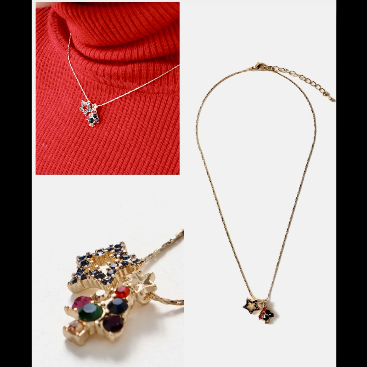 カラービジューで構成されたミニサイズのクリスマスツリーのモチーフが