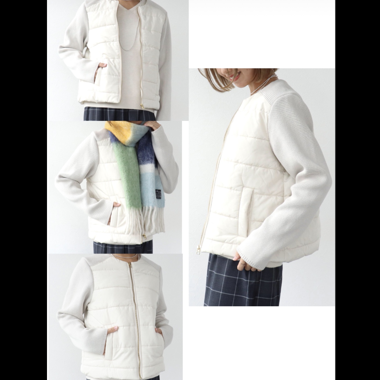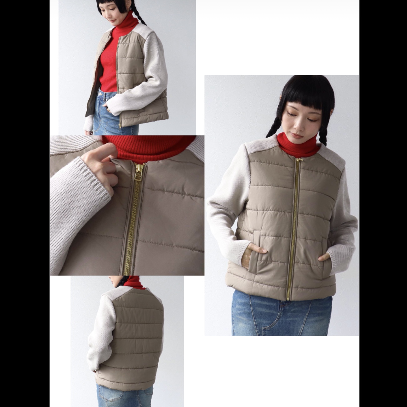 中綿の軽やかなボディと袖のニット素材の組み合わせは