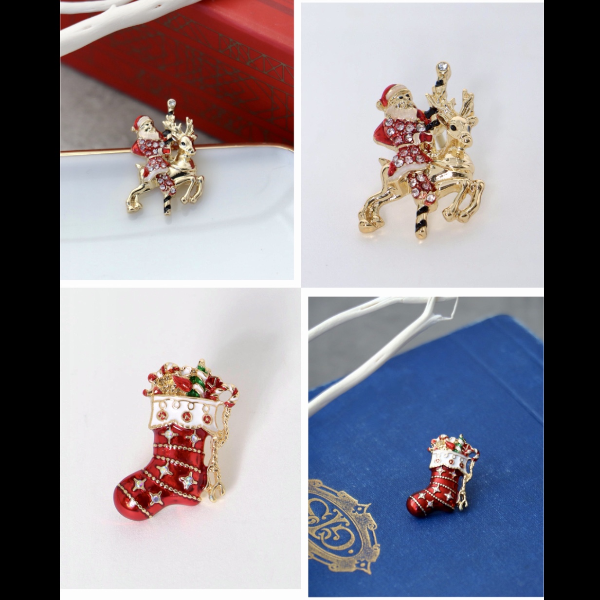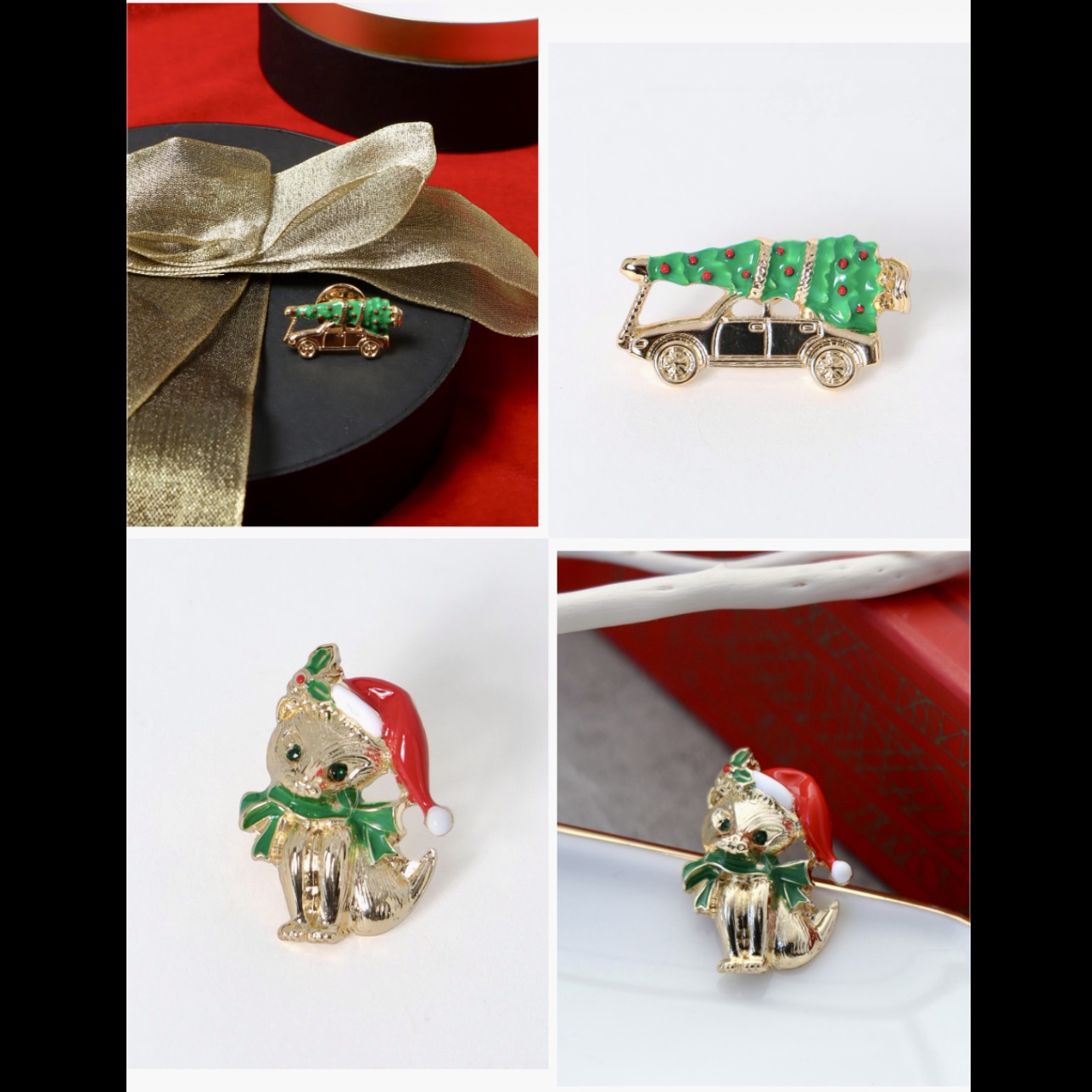 Santa Claus・ Christmas boots ・Christmas tree car ・Christmas Catタックピン