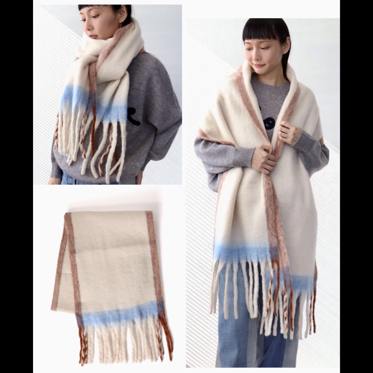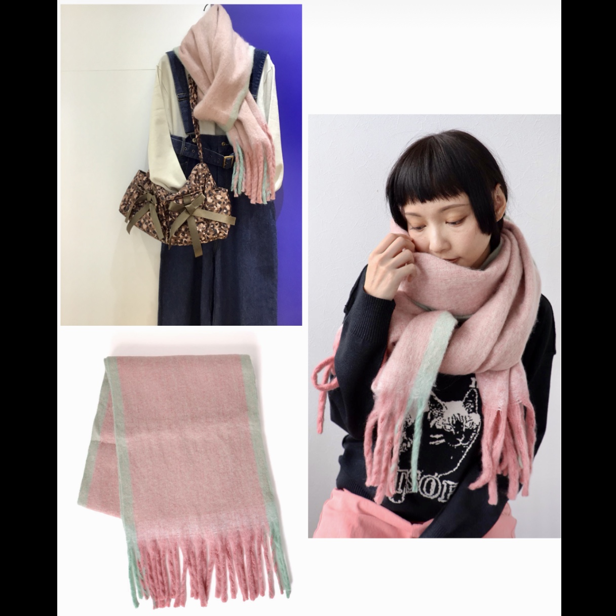 ふんわりとした彩り豊かなフレーム配色のマフラーです!
