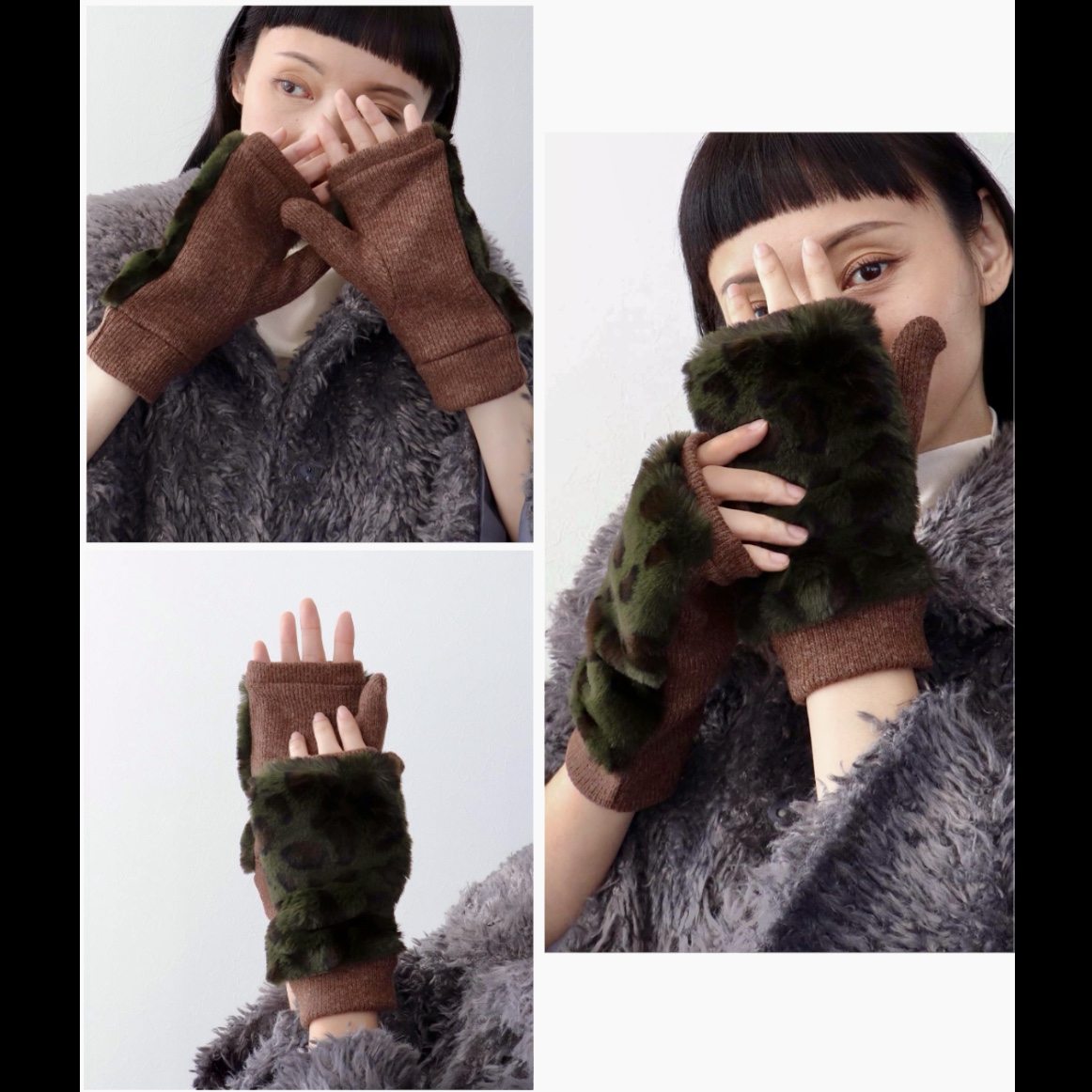 目を惹くレオパード柄がポイントの指無しグローブです!